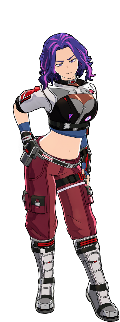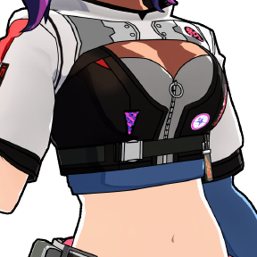 Ein Kostüm im Cyberpunk-Stil, dessen Design aufgrund der Spezialität asymmetrisch gestaltet ist.