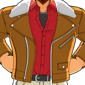 [All Might] Ein Leder-Outfit, das er seit Jahren mit Liebe trägt und entsprechende Gebrauchsspuren aufweist.